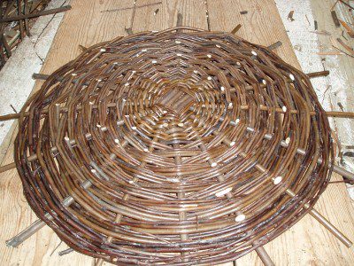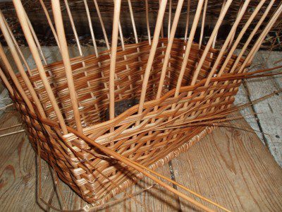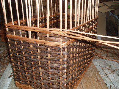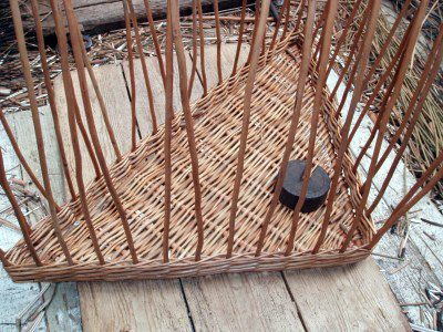 - The weave is finished – next the basket will be ‘bordered down’.